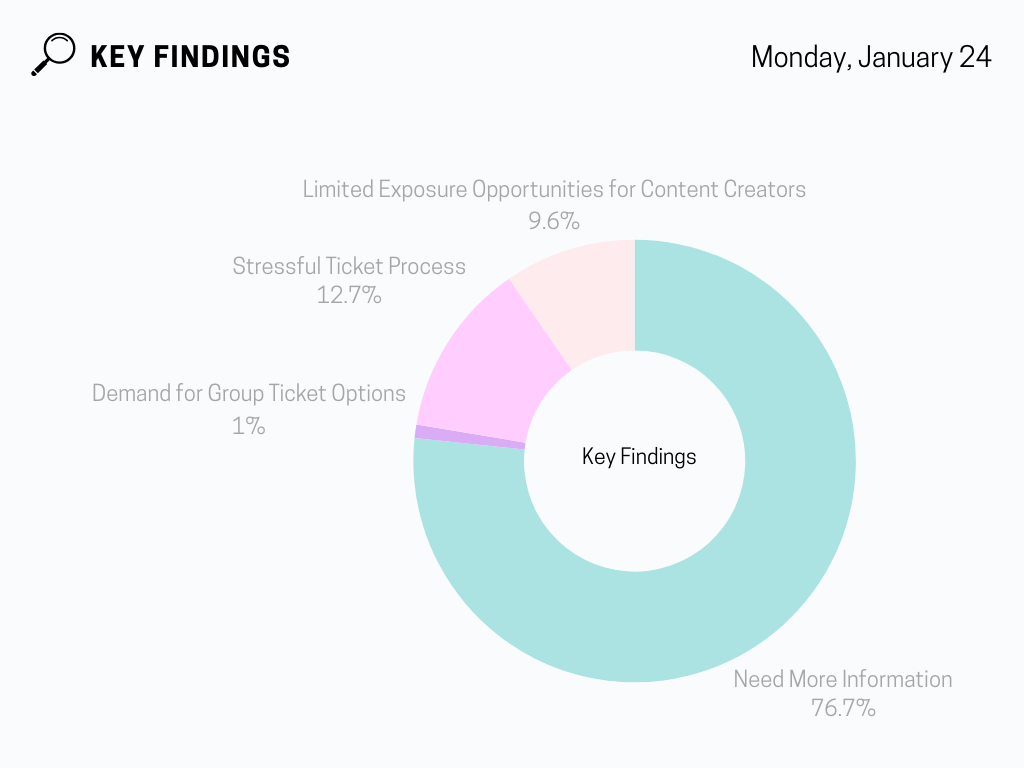 User interviews revealed that while I initially assumed the ticket purchasing process was straightforward, users found it stressful and unenjoyable. Additionally, users wanted more information about indie bands performing nearby. This led me to focus on improving the ticketing experience and enhancing users' exploration of indie music.